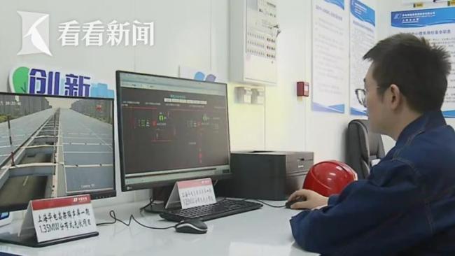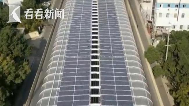 在虹梅南路高架放鹤路段和上中路段,从空中俯瞰,全封闭的声屏障上方,全部铺设了分布式的光伏板,总长达到1.2公里。在高架的下方,配置了移动式的变压站和的控制室,把绿电源源不断地输送到电网。