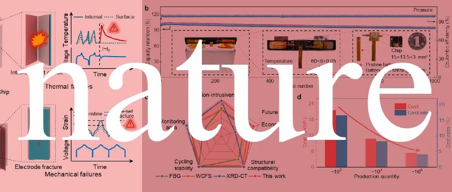 近年来,能源电池技术发展迅猛,但安全问题日益凸显。据统计,2010-2024年间,全球共报告近万起锂离子电池安全事故,对新能源汽车、储能系统等领域发展构成重大挑战。传统外部传感技术难以满足电池内部风险信号的早期精准识别,使得植入式内部传感技术备受期待,但包括欧美《Battery 2030+》等研究计划在内的植入方案,仍存在破坏电池密封结构、电磁屏蔽导致信号传输受限、长期稳定性不足以及工业化兼容性较差等技术瓶颈。