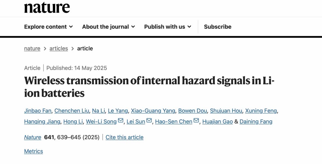 2025年5月14日晚,北京理工大学先进结构技术研究院陈浩森教授团队在Nature杂志发表研究论文,另辟蹊径交出“智能电池”力学答卷。