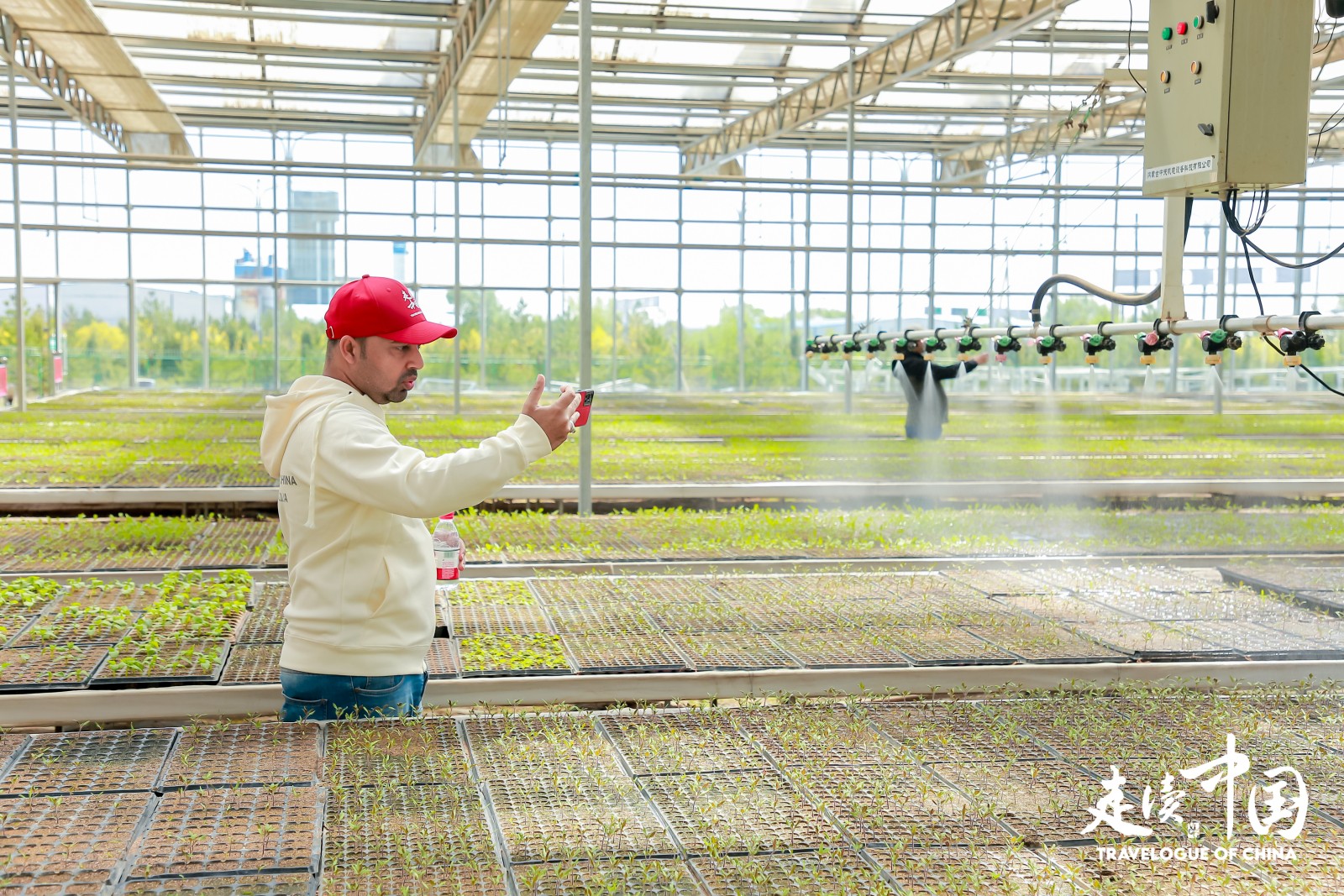 外媒记者在冷凉蔬菜院士工作站内的越冬温室大棚进行拍摄。环球网供图