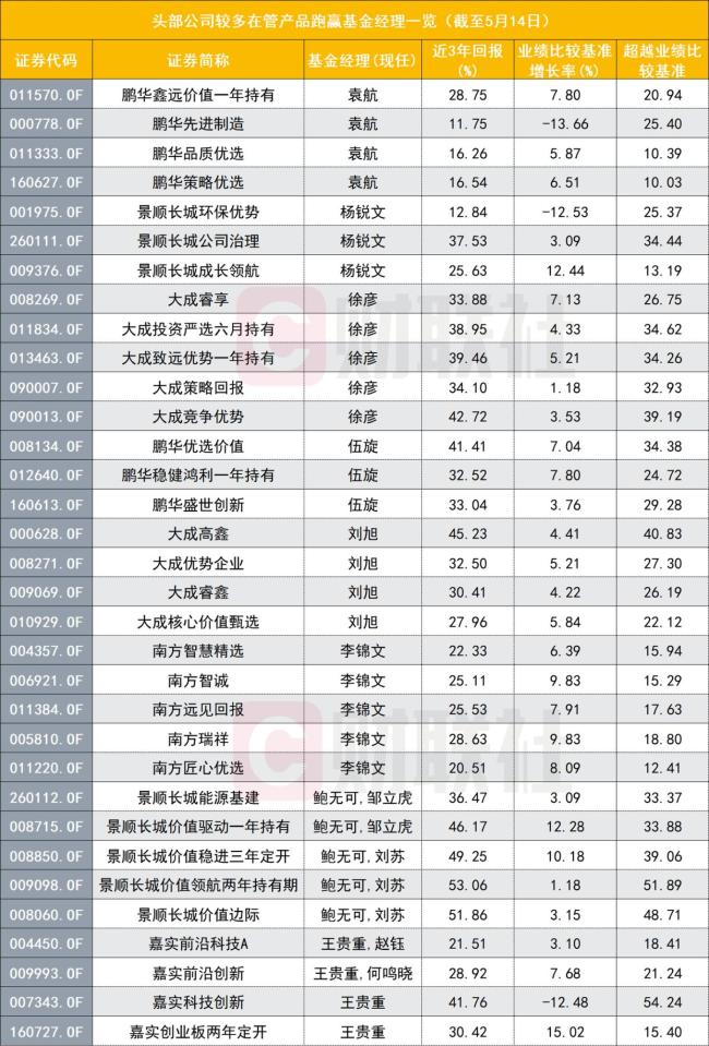 虽然符合条件的产品属少数,但仍有不少基金经理在管多只产品上榜。例如,景顺长城基金鲍无可在管8只产品中有6只符合前述标准。景顺长城价值领航两年持有期的表现尤为亮眼,该基金的近三年回报为53.06%,而同期业绩比较基准为1.8%,跑赢51.89%。不过,近期这些产品多出现增聘基金经理动作,增聘的基金经理包括刘苏、张仲维、邹立虎。