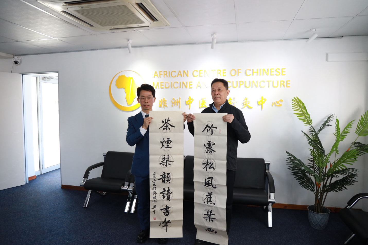 四川省副省长杨兴平向非洲中医及针灸中心赠送墨宝。非洲中医及针灸中心供图