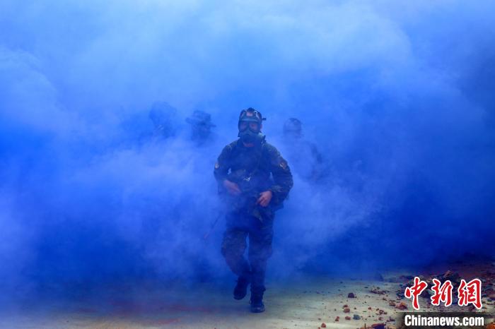 图为官兵们快速穿越“染毒区”。江怀鹏 摄