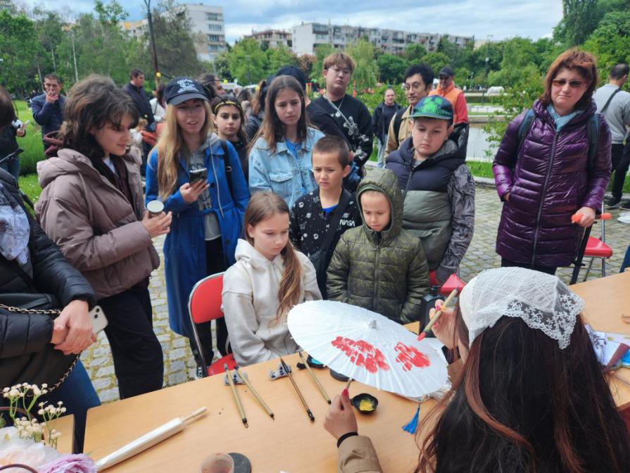 活动现场气氛热烈友好,牡丹主题图片展、非遗书画展示、牡丹茶点品尝、汉服试穿体验、绘画手工制作、图书文创义卖等活动,深受保加利亚民众的喜爱。此次活动得到索非亚中国文化中心的大力支持。