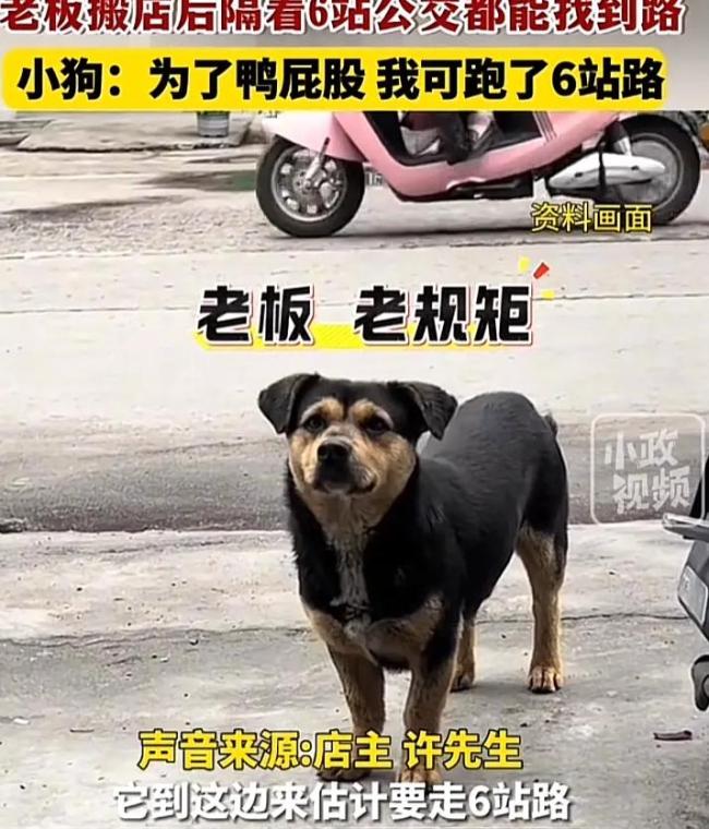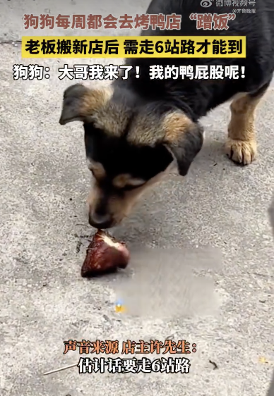 烤鸭店搬家小狗跑6站地找来!5月22日(报道时间),江苏常州,狗狗每周都会去烤鸭店“蹭饭”,老板搬新店后,需走6站路才能到。店主许先生称,小狗是先前那家店的主顾,经常去吃鸭屁股,去年开了新店后,小狗一周大概还会来3次,“它到这边来估计要走6站路,我也好奇……”