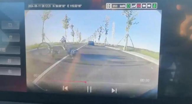 8月11日,河北保定容城县贾光乡发生了一起交通事故。一名11岁小男孩跟着父亲以及自行车队在双向公路上骑行,在接近中线时不小心摔倒进入对面车道,被一辆小汽车碾压身亡。相关视频显示,一行人身穿统一的蓝色队服,戴着头盔,骑行速度较快,码表显示时速一度超过了37公里。孩子在变道时不慎摔倒在对面机动车道上,被路过的司机姜某驾车碾压。涉事汽车的行车记录仪显示,汽车车速约为52km/h,事发时汽车两侧均有骑行者。据报道,遭碾压的孩子只有11岁。根据《中华人民共和国道路交通安全法实施条例》规定,驾驶自行车必须年满12周岁。