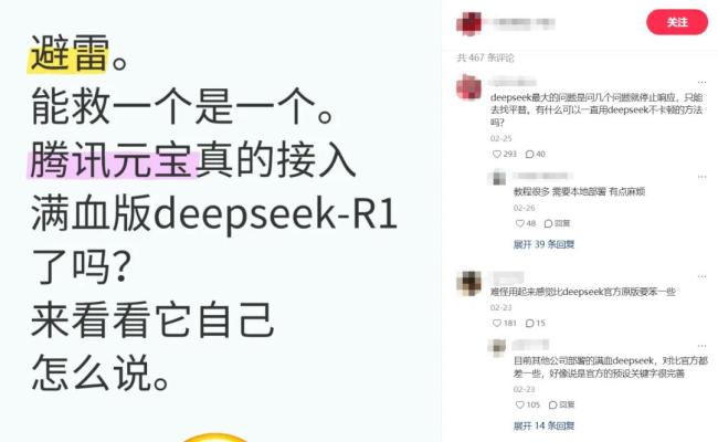 ▲社交平台上网友们对元宝版DeepSeek的质疑