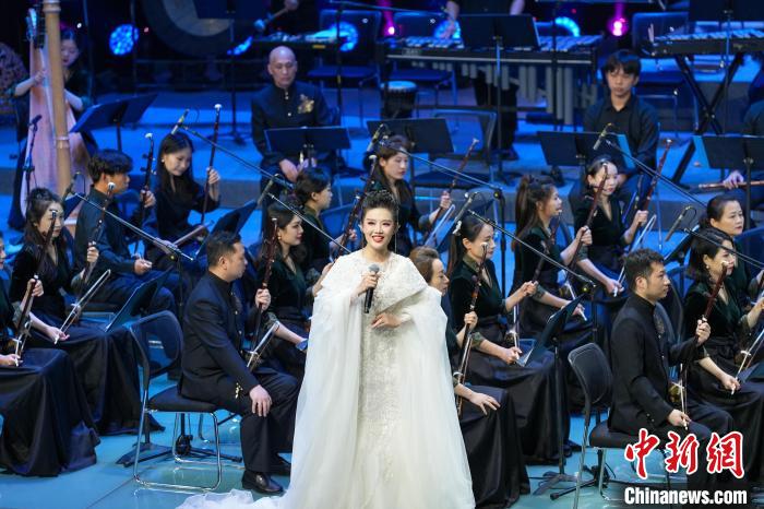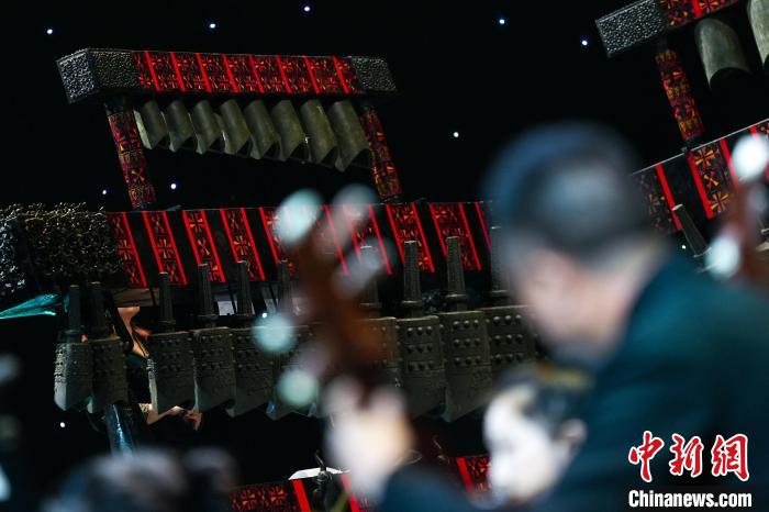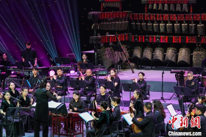 图为本次音乐会将编钟与民族管弦乐融合到一起进行表演。张倩龙 摄