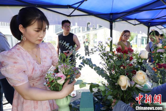5月22日,江苏南京,大学生参与插花制作。中新社记者 泱波 摄