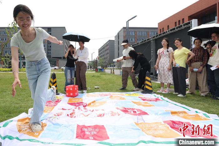 5月22日,江苏南京,大学生参与趣味运动会。中新社记者 泱波 摄