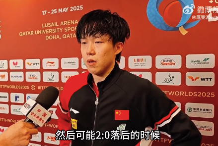 王楚钦谈0-2落后逆转——“确实,因为在大赛当中这种2比0落后也是经历的不多吧,也是第二次经历,这一次庆幸是自己赢下了比赛,我觉得也是会对自己信心上、心态上有一个提高吧。”
