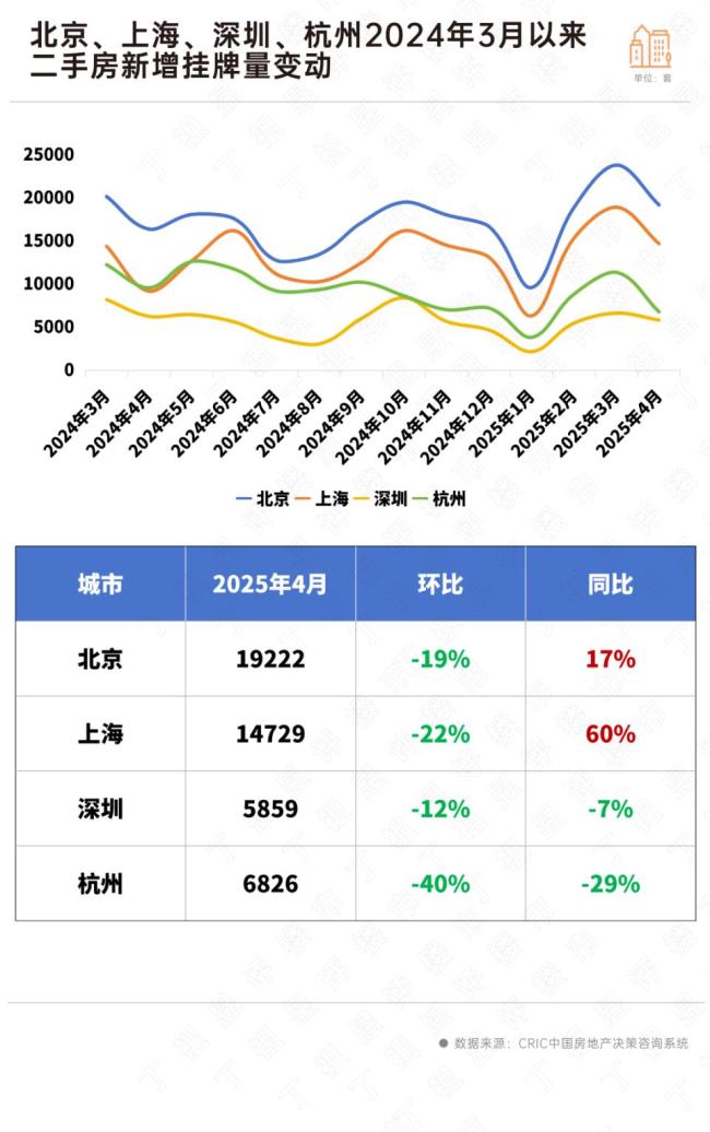 二手豪宅挂牌交易占比双增,什么信号? 高端市场坚挺信号!在房地产市场止跌回稳的过程中,无论是新房还是二手房市场,高端市场的表现都相对坚挺。特别是在二手高端市场,今年4月,在二手房整体成交热情略有回落的情况下,北京、上海、深圳和杭州的二手豪宅挂牌和成交占比都有所增加。其中,上海总价3000万元以上的高端住宅新增挂牌占比达到了0.58%,创下2025年以来的新高。