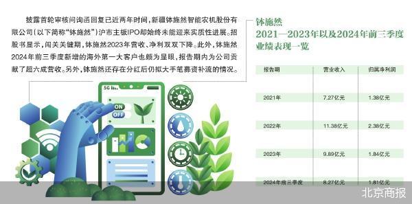 披露首轮审核问询函回复已近两年时间,新疆钵施然智能农机股份有限公司(以下简称“钵施然”)沪市主板IPO却始终未能迎来实质性进展。招股书显示,闯关关键期,钵施然2023年营收、净利双双下降。此外,钵施然2024年前三季度新增的海外第一大客户也颇为显眼,报告期内为公司贡献了超六成营收。另外,钵施然还存在分红后仍拟大手笔募资补流的情况。