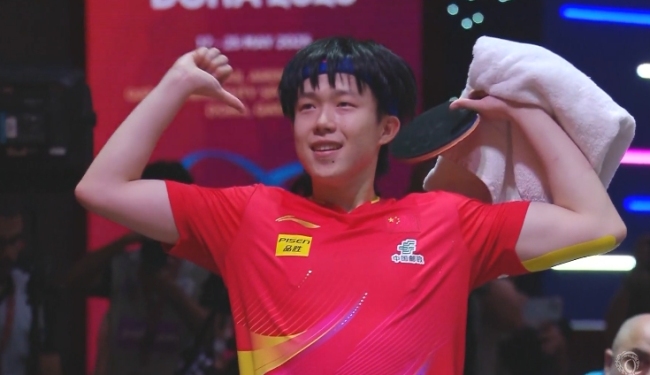 在世乒赛男单决赛中,王楚钦以4-1战胜雨果,赢得了个人三大赛的首个冠军。