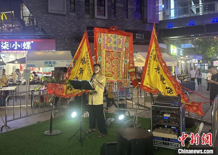 5月4日晚,龙舟说唱代表性传承人梁章来开展演出。中新社记者 程景伟 摄