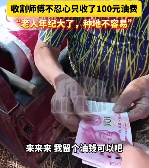 老人种地难师傅主动减收割费:老人年纪大了 种地不容易