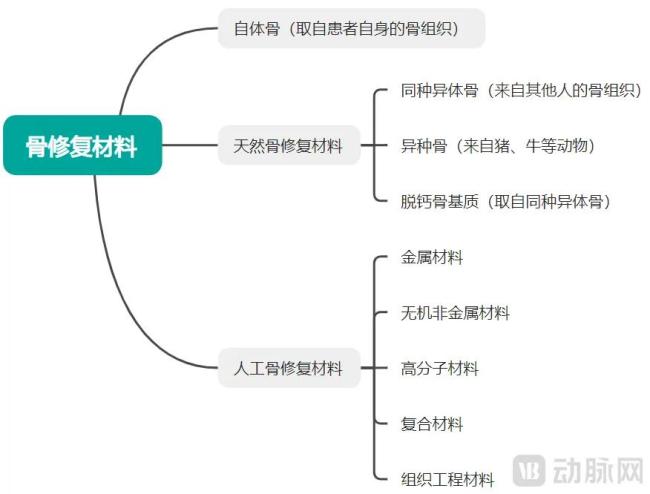 目前,骨修复材料大体可分为三类:自体骨、天然骨修复材料和人工骨修复材料。其中,自体骨是取自患者自身的骨组织;天然骨修复材料是取自其他人或动物的骨组织;人工骨是通过金属、高分子、无机非金属等材料制造出的骨修复材料。