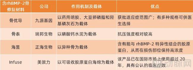 目前,国内已有四款含rhBMP-2的骨修复材料。其中,九源基因旗下的骨优导是中国首款获准销售的含rhBMP-2骨修复材料。