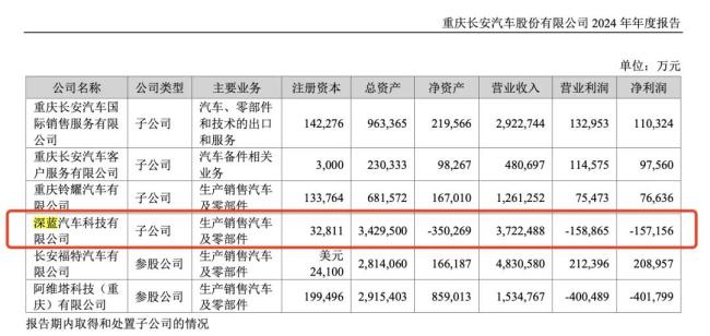 长安汽车2024年财报显示,深蓝汽车2024年交付量达到了24.3万辆,相较于2023年的13.48万辆几乎翻番,但未实现28万辆的年度目标。全年营收达372.25亿元,亏损达15.72亿元。