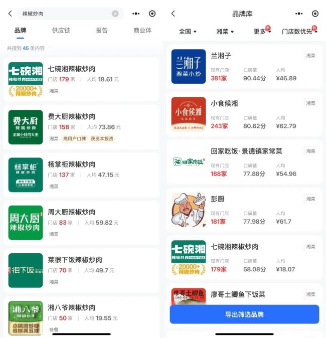 即便如此,费大厨并非高枕无忧。一方面,费大厨依赖直营模式,对供应链管理和成本控制要求极高。另一方面,辣椒炒肉正在成为全餐饮行业的流量密码,竞争异常激烈。除费大厨外,农耕记、兰湘子、杨掌柜、七碗湘等以辣椒炒肉为招牌菜式的湘菜品牌同样扩张迅速。