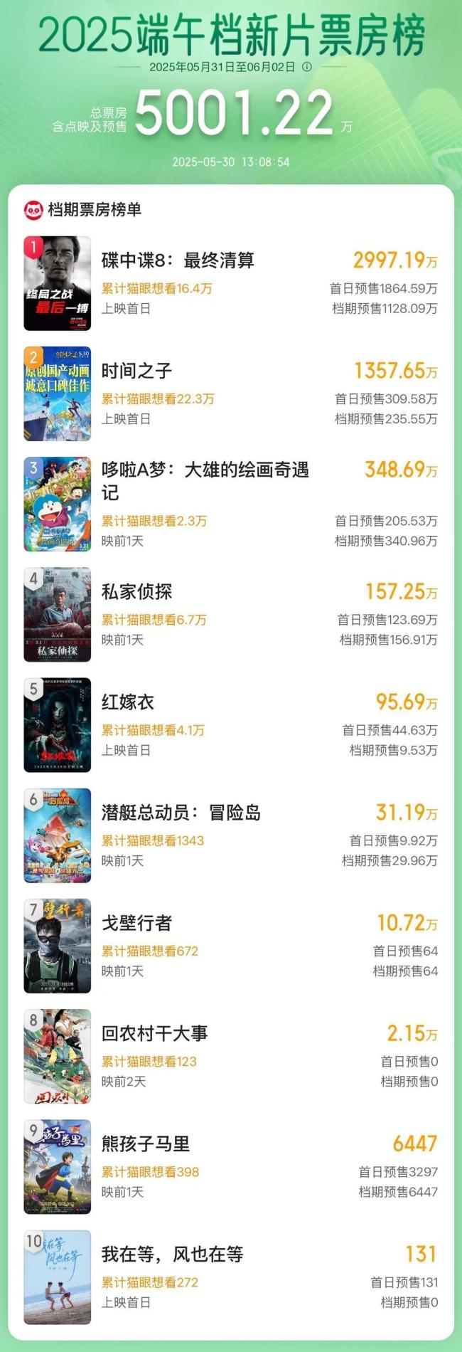 2025端午档新片票房破5000万 《碟中谍8》领跑预售榜