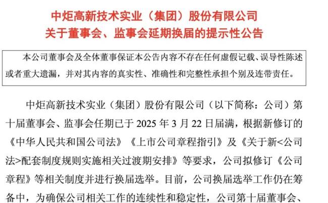 直到目前,中炬高新内部治理似乎还未理顺。5月20日,中炬高新公告关于董事会、监事会延期换届,称公司第十届董事会、监事会任期已于2025年3月22日届满,目前,公司换届选举工作仍在筹备中,为确保公司相关工作的连续性和稳定性,公司第十届董事会、监事会的换届选举工作将适当延期,董事会各专门委员会、高级管理人员的任期亦相应顺延。公司正在积极筹备换届选举相关工作,预计于本公告发布后2个月内完成换届选举工作。