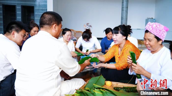 图为傣族民众正在品尝粽子。杨黎莹 摄