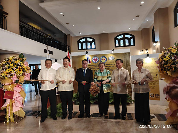 人民网马尼拉5月31日电(记者樊帆)5月30日,中国驻菲律宾大使黄溪连与菲律宾候任外长拉扎罗共同出席由菲律宾华裔青年联合会和菲中友好协会举办的庆祝中菲建交50周年图片展暨使馆向华裔历史博物馆捐赠的智能讲解设备启用仪式。