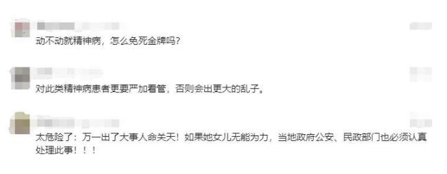 北京泽亨律师事务所胡磊律师分析称,该女子在公共场合持刀可能已构成危害他人的暴力行为,符合强制送医程序启动的初步条件。据报道,楼下邻居已被警方送到精神病院进行鉴定。网友纷纷表示,这种情况太危险了。