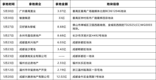 据不完全统计,5月份,广州、佛山、成都、长沙、福州、杭州等多个城市的多宗土地,都由民营房企拿下,有不少民营房企时隔多年重启拿地。