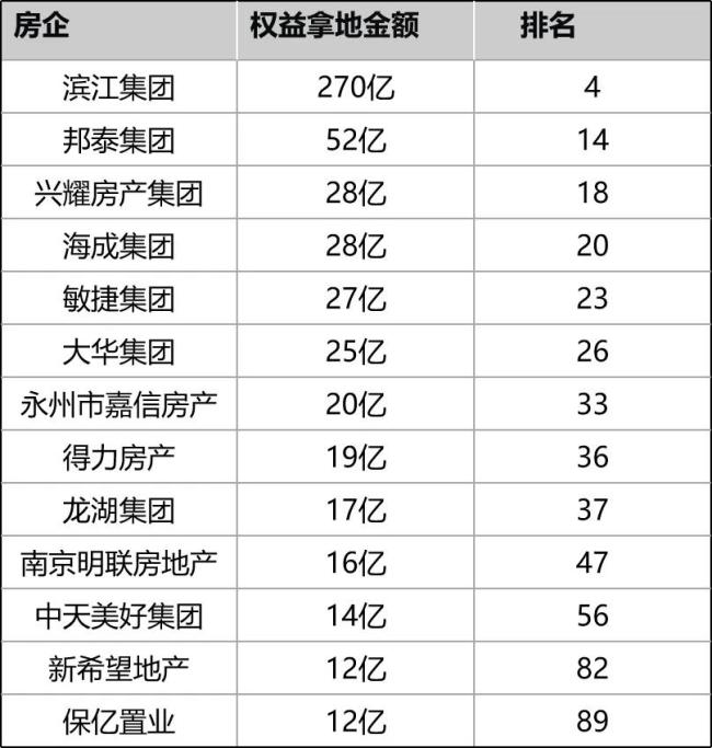 数据来源:中指研究院不过值得关注的是,今年活跃在土拍市场的民企,除了少数的熟悉面孔滨江、龙湖、敏捷、邦泰、新希望等民企,还出现了不少没听过的陌生面孔。