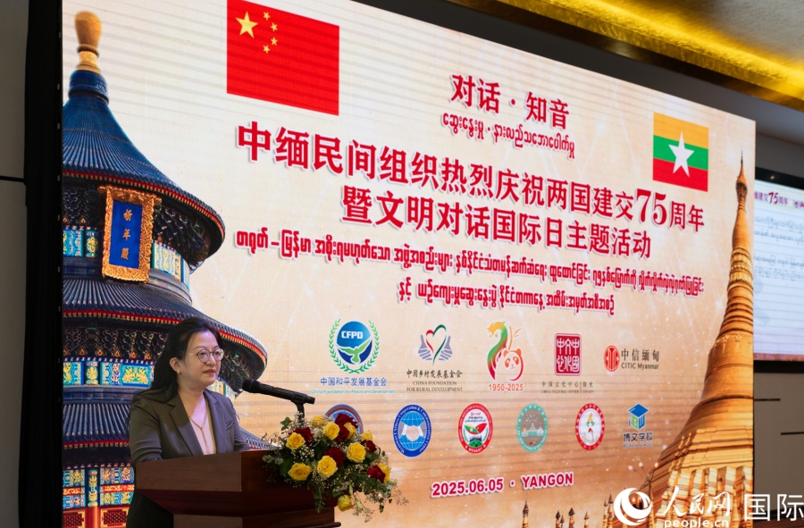 人民网仰光6月5日电 (记者谢佳君)6月5日,中国和平发展基金会、仰光中国文化中心在仰光共同举办庆祝中缅建交75周年暨文明对话国际日主题活动,中国驻缅甸大使马珈及中缅民间组织和友好人士代表等200余人出席。