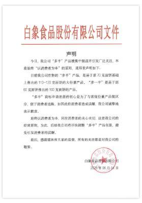 今日,白象食品发布声明称,“多半”产品被集中报道并引发广泛关注。公司表示,目前在售的“多半”产品是基于原70克面饼基础上推出的110-120克面饼的大份量产品。“多一半”则是基于原60克面饼推出的100克面饼的产品。“多半”商标申请注册的初衷是为了与常规份量产品做区分,便于消费者选购。如因此给消费者造成误解,白象公司诚挚地表示歉意,并将尽快调整“多半”产品包装,避免引发消费者的误解。