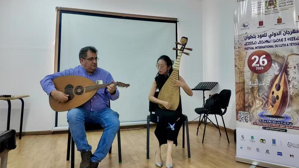 人民网迪拜6月7日电 (记者管克江)“知音对话”2025文明对话国际日系列活动近日在摩洛哥举办。拉巴特中国文化中心携两名中国青年琵琶演奏家宋梓滢、匡泓霖亮相第26届得土安国际乌德琴艺术节,与来自摩洛哥、埃及、巴林、苏丹等国的艺术家们一同奏响丝路乐章。