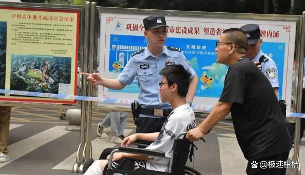 全程护送!民警护送拄拐考生进考场 温暖守护助力高考!6月7日,高考如期而至,在四川的各个考点上演了许多温馨的故事。泸州市泸州高中考点有三名因腿部受伤而乘坐轮椅的考生。当他们乘坐出租车到达考点门口时,现场民警迅速上前搀扶,并帮忙搬运辅具,将他们送往考场。其中一名女生的考场位于五楼,民警在前一天试座时发现这一情况后,立即联系考生家长,承诺连续三天护送考生。最终,民警把两名分别在三楼和五楼考场的女生安全背到了考场,另一名在一楼考场的男生则被推入考场并护送进入。