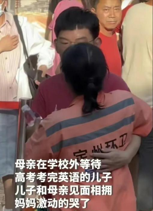 两年后,这对母子过得怎么样呢?2023年6月8日下午,英语考试结束,考生和家长们终于松了一口气。在人群里,任红娟身穿清洁工制服格外显眼。她的皮肤晒得黑乎乎的,衣服被汗水湿透,手里握着一瓶水,却舍不得喝一口。这次她没有提前告诉儿子会来接他。