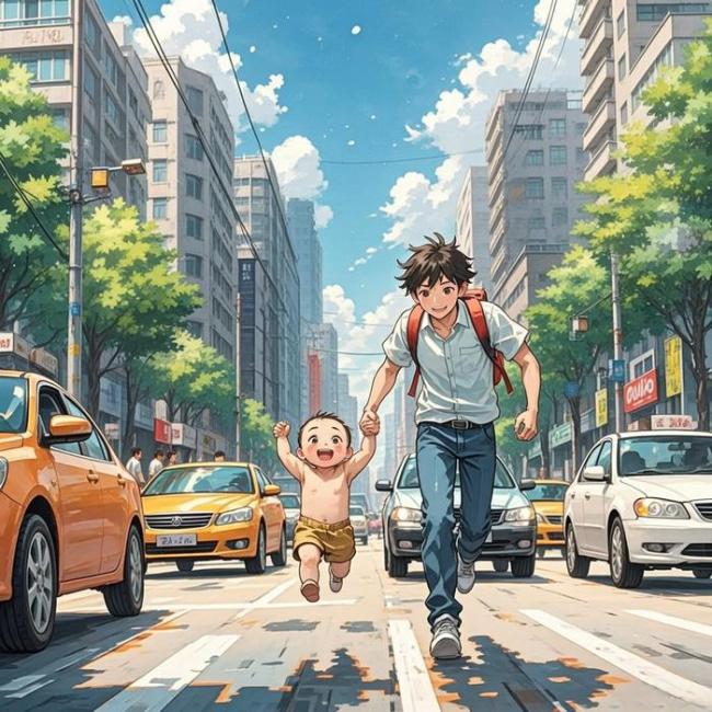 小孩光身跑进车流被一小哥救下 英勇小哥成真英雄