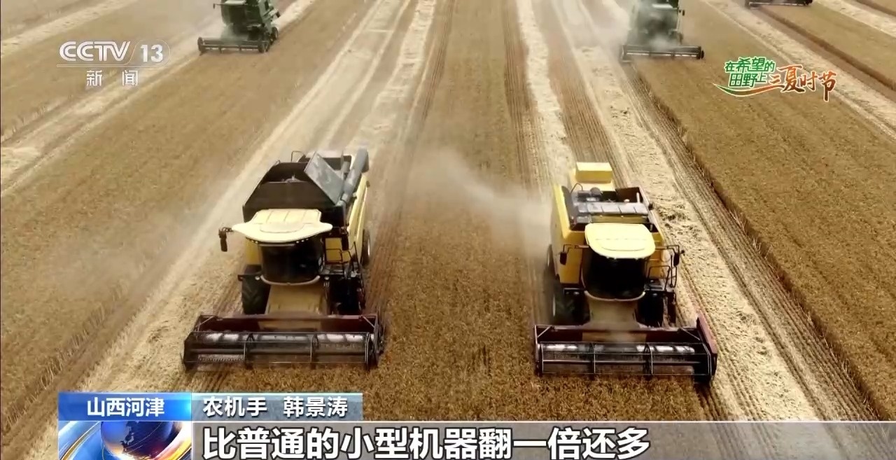 这段时间,在山西河津市的黄汾10万亩粮食优质高产高效示范基地,金黄的麦浪随风翻滚,新技术、新农机的应用让这个夏收季“科技范”满满。
