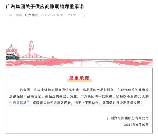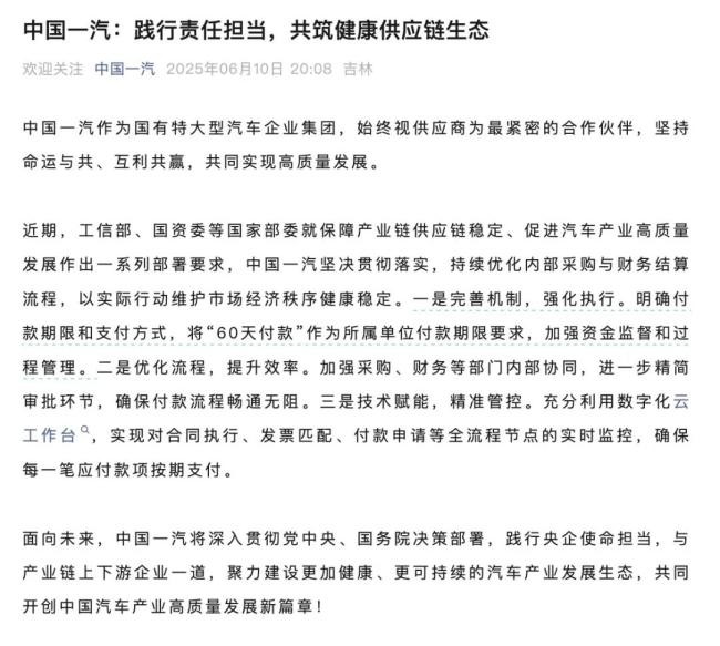 这也是在新版《保障中小企业款项支付条例》在6月1日起施行之后,公开表态的三家国有汽车企业。