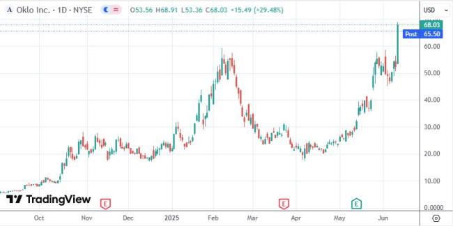 尽管Oklo对达成协议早有预期,但此前进展屡次受阻。公司在声明中解释说,先前的授标决定曾因其他竞标者的抗议而被撤销。根据预期协议条款,Oklo将设计、建造、拥有和运营发电厂,并通过长期电力购买协议向艾尔森空军基地提供电力和热能。受此消息影响,Oklo股价单日暴涨近30%,创下历史新高。