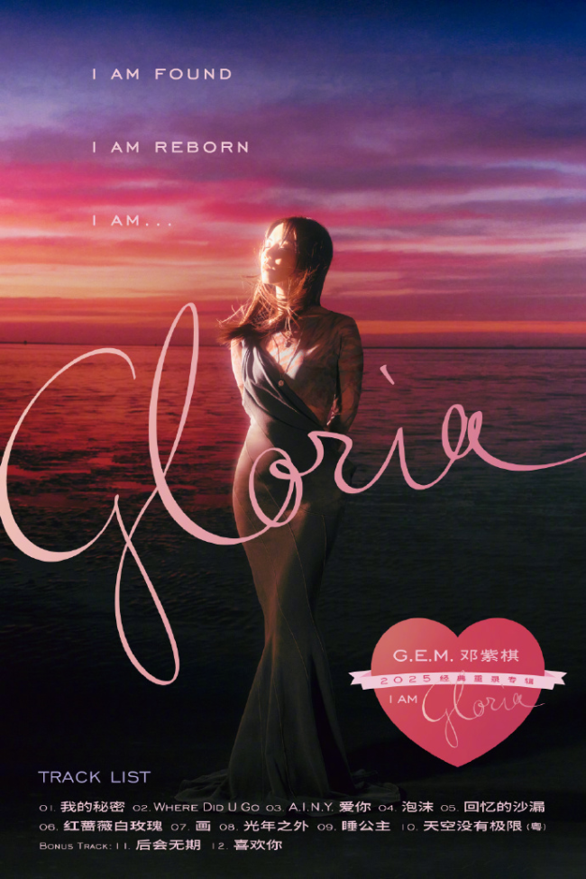 邓紫棋同时宣布自己重录旧作,并发布《 I AM GLORIA 》重录专辑,包括《泡沫》《光年之外》《后会无期》等代表作。