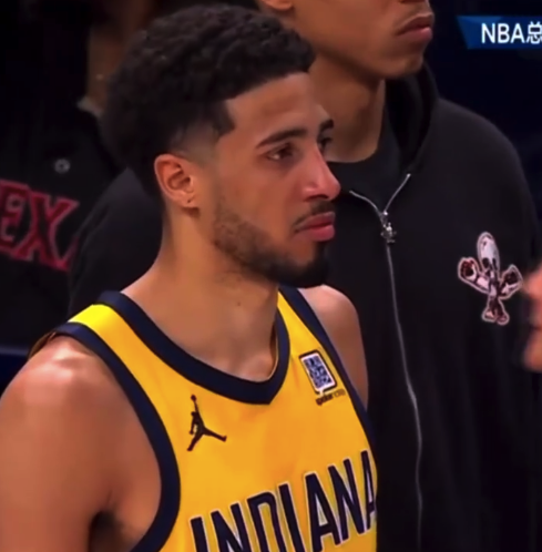 在比赛结束后,哈利伯顿眼神绝望,看着雷霆队主场庆祝,内心十分苦闷。