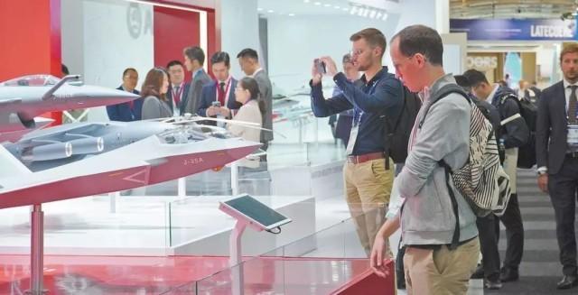当天,国外观众纷纷参观中国战机模型。中国航空工业集团在本次航展上展示了歼-35A、歼-10CE等一系列明星产品,集中展示近年来的创新发展成果。展台设计突出国际化与科技感,以“20”系列装备为引领,展示全谱系产品,包括战斗机、运输机、教练机、直升机、无人机及制导武器。歼-20、歼-35A两型新一代战机首次携手出海,展现了从单一装备研发到体系化作战解决方案的完整能力链。歼-35A以其流畅的隐身气动设计、先进的航电系统及多任务作战能力成为全场焦点。直-9ME直升机,“翼龙”-1G、“翼龙”-6、“翼龙”-10B、“旋戈”-2000无人机也在巴黎航展上首秀,展示了中国在直升机技术和无人机谱系化发展方面的最新成果。歼-10CE、“枭龙”战斗机,L-15A教练机,PL-15E空空导弹等明星军贸产品再度集结,助力中国航空装备开拓国际市场。