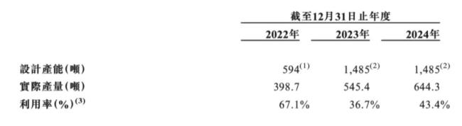 这几年建邦高科也在扩大产能,目前计划在中东再建1500顿的产能,预计2027年开始投产。而事实上,实际产能和利用率是很低的,2024年产能利用率只有43.4%。