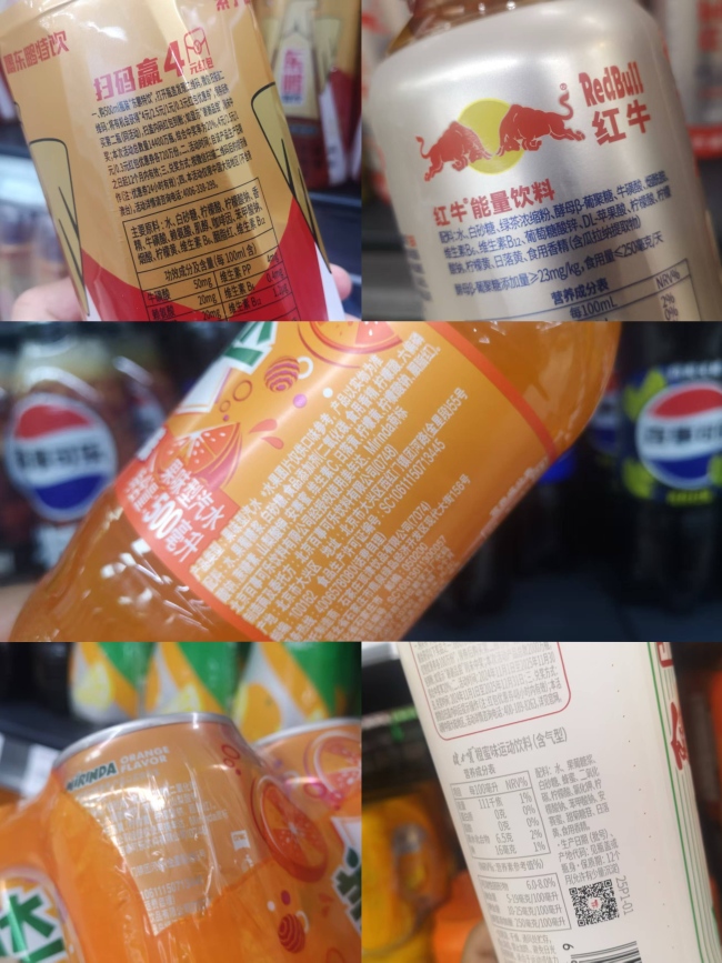 中华网财经注意到,芬达、美年达、天丝红牛、华洋凤梨味果汁汽水中含有日落黄、柠檬黄。东鹏特饮含有柠檬黄;健力宝橙蜜味运动饮料含有日落黄。