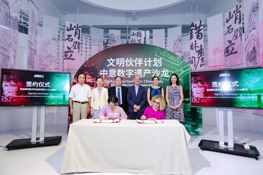 北京清城睿现数字科技研究院有限公司(简称清城睿现)、意大利奇维塔展览与博物馆有限公司(简称奇维塔公司)相关负责人现场签约。未来,双方将深化数字遗产方面的合作,包括以数字虚拟技术重现圆明园盛景,在首钢园以数字化方式向人们展示意大利文化艺术讯息等。