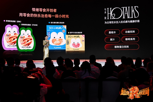 “在快节奏的生活中,留住三口的快乐与一瓶水的温柔”,三口小时光和H2O TALKS,遵循高情绪贴合度的产品理念,希望让情绪补偿像充电宝一样随手可得。三口小时光通过趣味包装设计和层次感风味研发,让每个撕开包装的动作都成为开启快乐的仪式。H2OTALKS的产品线布局,则将融入到各种饮用场景陪伴用户。此外,三口小时光包装上的“三口小兔”,还将成为独立IP,万达电影潮玩业务影时光负责相关产品的开发。