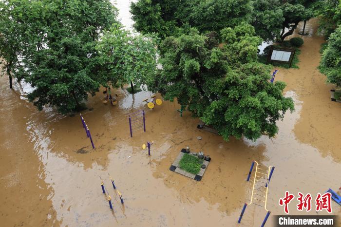 图为广西柳州市城区沿江低洼地段被洪水淹没。林馨 摄