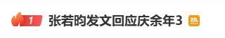 6月23日中午,“张若昀发文回应庆余年3”的词条登上热搜榜首。当天,《庆余年》官方账号发布了《庆余年3》的概念海报,并配文:“余年不尽,共付一梦。终极一战,大幕将启!”随后,男演员张若昀转发了这条微博,并表示“安之,待之”。