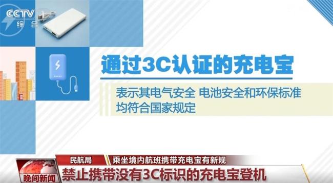 自6月28日起,民航局禁止旅客携带没有3C标识、3C标识不清晰或被召回型号及批次的充电宝乘坐境内航班。有3C标识的充电宝意味着产品通过了中国强制性产品认证,其电气安全、电池安全和环保标准均符合国家规定,确保使用过程中不会引起电气火灾、触电等危险,也不会对环境和人体健康造成危害。